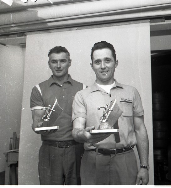 Image # 1762 - 1963 Men's Doubles City Bowling Tournament Champions. City team doubles champions in annual tournament. Winners were (L) Terry Neidecker and Marlon Bushard. |