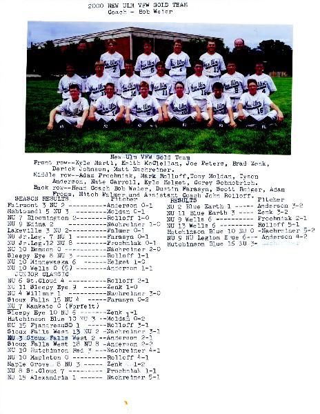 Image # 678 - 2000 VFW Gold Team Cover Page of season record