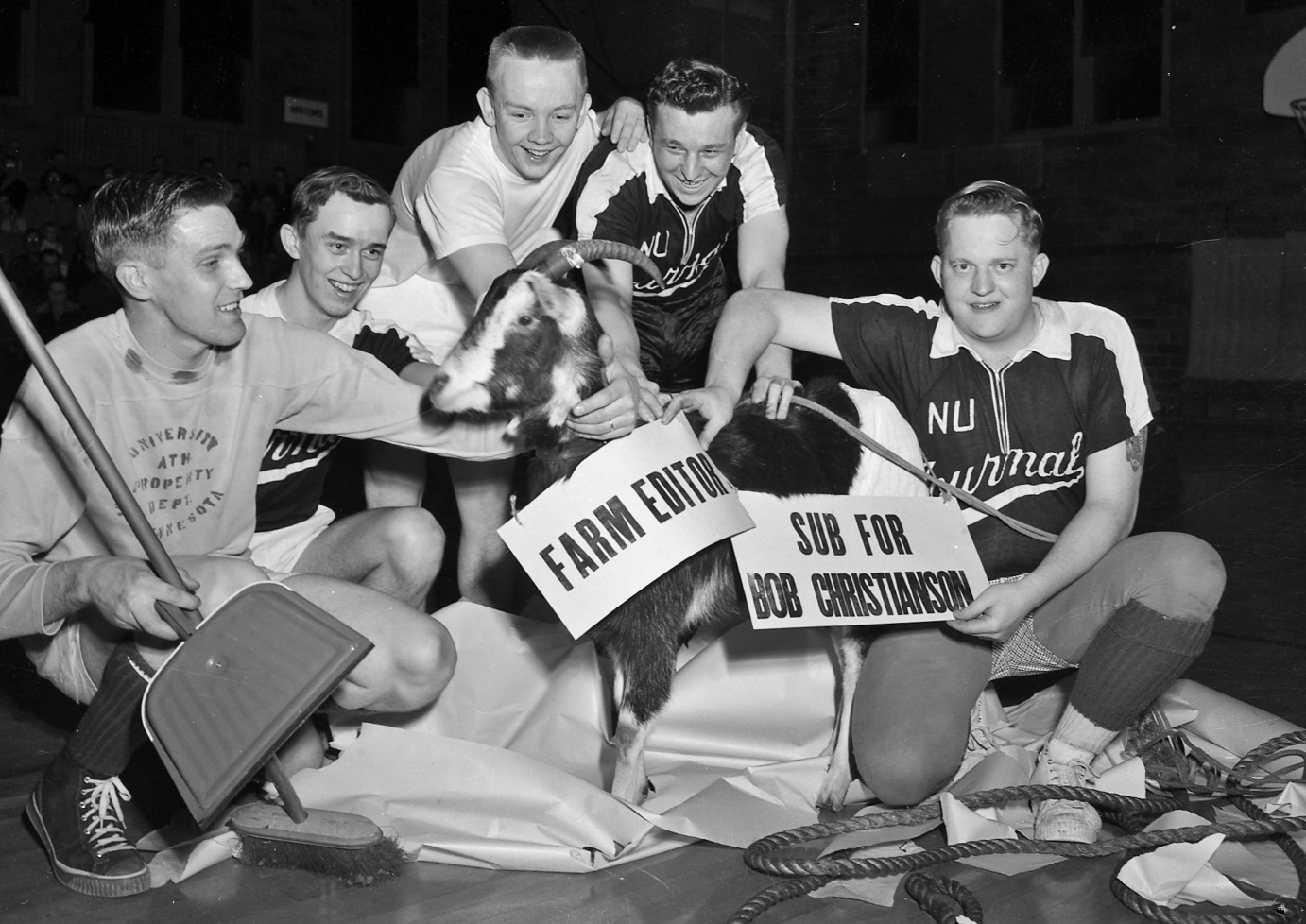 Image # 4229 - New Ulm Journal Basketball Team Version 2 Charity basketball team of Journal Employees. Team formed primarily to raise funds for annual March of Dimes promotions. Negatives include team picture promoting game at Buffalo Lake sans Bob Christianson. Another team picture includes other members of team, the standard publicity photo. (a) Also available under d... (Click on the image for a full description) |